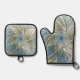 Set De Manoplas Floral Dream Pattern Abstract Blue Khaki Fractal