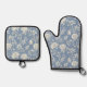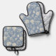 Set De Manoplas Flores Azules Crema Románticas y Bonitas
