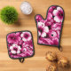 Set De Manoplas Flores tropicales hawaianas Patrón rosa Hibiscus