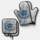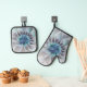 Set De Manoplas Flourish Abstract Modern Fractal Flower With Blue