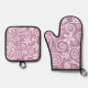 Set De Manoplas Flowers Swirls Dusty Pink White Pattern Whimsical