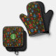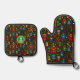 Set De Manoplas Folk coffee tools oven — emerald, red & cobalt