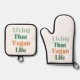 Adopte su estilo de vida vegetal con este encantador "Living That Vegan Life" Pot Holder y Oven Mitt Set. Con una fuente de estilo minimalista, en una paleta de color verde fresco, este diseño es simplista y de moda. Perfecto tanto para cocinar como para cocinar, el portamaletas y la migaja no sólo son funcionales sino también un recordatorio delicioso de tu compromiso con un estilo de vida vegano. Ideal para ti mismo o como regalo para el chef ecológico en tu vida.