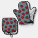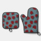 El conjunto perfecto para una panadería, este estuche de hornillos y un tendedero presentan un divertido diseño lleno de fresas con un fondo turquesa.