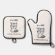 Oven Mitt & Pot Holder Set con un gatito gracioso, sarcástico y un gatito chismoso que claramente se declara a sí mismo la opción preferida para el afecto sobre el perro.