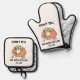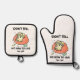 Oven Mitt & Pot Holder Set con un caprichoso ilustracion de un gato lúgubre que descansa perezosamente en una gran silla de barbas. Capta un humor gracioso de "día perezoso" —como un gato que se permite refrigerios y no hace absolutamente nada productivo. Da lugar a una sensación humorística y relativa de estar descansando y arremetiendo contra el exceso.