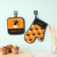 Presentamos nuestro elegante Oven Mitts & Pot Holders, perfecto para su hora de Halloween. Estos accesorios tienen un fondo negro y naranja, acentuado con un borde negro que le da un toque de encanto a su conjunto culinario. El detalle del monograma ofrece un toque personalizado, haciendo que estos manoples y soportes no sólo sean prácticos sino también una moda adicional a su cocina. Diseñados con un gato vestido con un gorra de chef y sosteniendo ilustraciones de araña, encarnan una estética simple y fresca, asegurando que cocinas a la vez que mantienes tus manos protegidas.