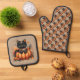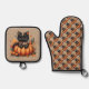 Set De Manoplas Gato negro en calabaza con patrón de inclinación o