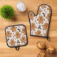Gingerbread Men Candy Canes and Holly Sprigs on a White Background Christmas Oven Mitt & Pot Holder Set.
