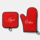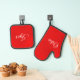 Sube el calor con un toque personal —este fiero mitt de horno rojo y el portaobjetos de olla mezclan el color audaz con un guión elegante, haciendo que cada comida se sienta como única tuya.