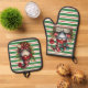 Un Juego De Cocina De Gnome Rojo Y Verde De Faja, Oven Mitt Y Pot Holder