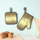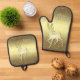 Beautiful Golden Reindeer Snowy Oven Mitt & Pot Holder Set