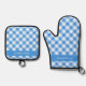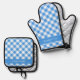 Set De Manoplas Granja De Gingham Azul Y Blanco Personalizada