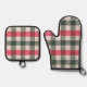 Granja roja y verde Gingham Oven Mitt & Pot Holder Set