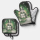 Beautiful Green Snowman Snowflakes Oven Mitt & Pot Holder Set
