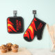 Las llamas de fuego de parrillada Master BBQ personalizaron Oven Mitt & Pot Holder Set.. Diseño de Guay con texto personalizado. Idea de regalo de cocina para cocinero, maestro de parrilladas, rey barbacoa, padre, marido, etc.