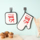 Set De Manoplas Guantes de cocina Kanji Delicious rojos y blancos