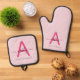 Set De Manoplas Guión de cocina del Chica Monograma Rosado Calient