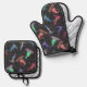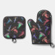 Gorras de brujas voladoras con temática de Halloween, coloridas, encantadas, sobre un set de un horno de fondo negro estrellado mitt & pot.