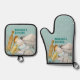 Juego de guantes y agarraderas de horno con lunares azules | Un conjunto de herramientas de cocina y suministros de repostería sobre un fondo de lunares azules hacen que este sea el conjunto perfecto de protectores térmicos para la cocina. Agrega tu nombre para personalizar el diseño. Un regalo ideal para la futura novia o el nuevo dueño de la casa.