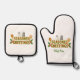 Fun holiday mitt and pot holder, "Seasoned Greetings" with salt and pepper shakers and chef's name for the cook you love and appreciate to handle and serve hot food from the oven. Festive holly, spoon and fork frame the wording on this festive design.