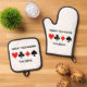 Muestra tu puente irónico / doble sentido del humor del puente con este kit de horno y portaobjetos con los cuatro trajes de cartas junto con el siguiente consejo del puente: "Interrumpir tu puente de juego rutinario". Puente memorable diciendo que el horno mitt y el soporte de la olla están listos para cualquier jugador de puente ávido!