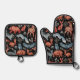 Illustrated woodland animals in red and blue, including foxes, bears, owls, and deer, are adorned with intricate patterns on a black background.