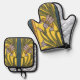 Set De Manoplas Iris Flor Art Nouveau Vidrio Manchado Oro Azul