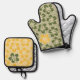 Set De Manoplas Isla Floral Hawai Hibiscus Pinstriped Olive