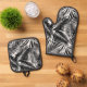 Set De Manoplas Kona Palms Hojas Tropicales Hawaianas Negro
