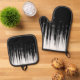 El conjunto de soportes de Oven Mitt y Pot con una línea circular hipnótica en blanco y negro Streaks un diseño de patrones de arte abstracto por TheFabricSeal en Zazzle.com #ZazzleMade con líneas estiradas en blanco y negro de aspecto fresco que se desvanecen entre sí. Además de las rocas rojas circulares y blancas dispersas al azar, que dan la ilusión de algo de ciencia ficción. Potencie sus aventuras culinarias con nuestros Oven Mitts y Pot Holders: productos esenciales para la cocina que combinan perfectamente la funcionalidad con el estilo personalizado. Diseñadas con precisión y cuidado, estas herramientas de cocina están diseñadas para elevar tu experiencia culinaria y añadir un toque de originalidad a tu cocina. Pieza de silicio sin deslizamiento para mayor estabilidad y seguridad durante el uso. Diseño de bucle colgante para mantener las cosas ordenadas y ahorrar espacio. Con protección térmica de silicona negra.