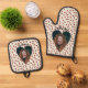 Celebrate spring and Easter with this cute personalized oven mitt & pot holder set featuring hand drawn red ladybugs , custom photo and name on a cream white background.