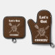 Diseño gráfico con parrilla y utensilios de cocina. El texto dice Vamos a cocinar’. El color de fondo se puede personalizar.