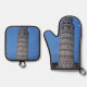 This captivating photograph showcases the iconic Leaning Tower of Pisa standing elegantly against a deep blue twilight sky in Pisa. The historic marble tower, famous for its unmistakable tilt, is beautifully illuminated, highlighting its intricate Romanesque arches and layered columns.