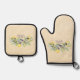 Un juego de bonitos de un tenedor de maceta y una cacerola de horno con un rociado toscano de limones y aceitunas sobre un fondo criamtico y envejecido. Se puede comprar por separado o como conjunto. Elija un soporte de silicona negra o un soporte de plata colgada resistente al calor.