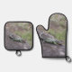 An oven mitt anf pot holder featuring a photo of a lizard.