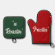 Un divertido juego de mitt de horno que es perfecto como un lindo regalo de Navidades para mamá, tu mejor amiga, abuela, tía, etc. con las palabras "Frostin' 'n Roastin'".