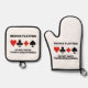 Si juegas bridge, entonces sabes que 13 es un número clave en el juego ya que representa el número de cartas en un traje. Deje que su lado de actitud de puente irracional brille con este estuche de horno y el juego de portamaletas con los cuatro trajes de cartas junto con el dicho "Los jugadores puente no tienen Triskaidekafobia". Triskaidekafobia es el miedo al número 13, que los jugadores de bridge ciertamente no tienen.