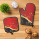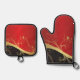 Diseño de arte moderno con colores vivos rojo, dorado y negro. Encienda la cocina con este fogón de horno y un tendedero. (Los artículos también se pueden comprar individualmente.