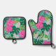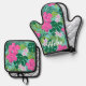 Set De Manoplas Luna Hibiscus Garden Hawaiian - Rosa y Turq