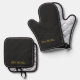 Personalize your kitchen with this metallic black oven mitt and pot holder set, customizable with your own text. The durable, heat-resistant design ensures safe handling of hot cookware, while the sleek black finish adds a modern, stylish touch. Perfect for cooking, baking, or gifting a unique, personalized kitchen accessory.