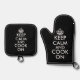 Manténgase tranquilo y cocina en el divertido juego Oven Mitt & Pot Holder negro. Tipografía moderna con corona. Crea tu propia parodia divertida con esta plantilla de meme. Una de las mejores ideas de regalo de cocina para cocinero.