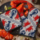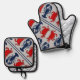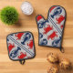 Manopla y agarrador de olla con estampado de langosta y cangrejos. Colores rojo y azul sobre gris, alegrarán cualquier cocina. ¡Regalo perfecto para un amante de los mariscos!