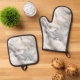 Set De Manoplas Mármol blanco con venas doradas y grises