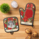 Pon a tu perro en la foto de este Navidad, con esta maniquí festiva del horno personalizado y el juego de portaplatos a juego. El juego de pezuña puede ser personalizado con una foto favorita de su mascota, y su nombre. La foto elegida estará rodeada de un diseño de corona, de vegetación estacional, cinta, bayas, acentos dorados y flores rojas de poinsetta. Debajo de la imagen, el nombre de su mascota aparecerá en una tipografía de escritura elegante. Lleno de encanto invernal y de alegría navideña, este conjunto de cocina es un regalo ideal para los amantes del perro y de la cocina. Para continuar, haga clic en 'Personalizar' para agregar la foto y el nombre del mascota elegido al diseño.