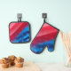 To edit and use your own font style-color-size text-- use the easy Design Tool. The background features colorful abstract stars and stripes with a gradient color pattern. Choice of single mitt or potholder and silver quilted (shown) or black silicone heat protection. See "About" for more information.