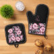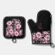 Este gráfico floral, se muestra en un patrón diamantífero, con grupos de flores, pétalos y hojas, en colores mudos; rosa, fuschia, lavanda, malva, verde y blanco - contra un fondo de negro.