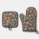 Set De Manoplas Mid-Century Geometric Teal & Orange Pattern