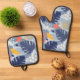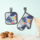 Set De Manoplas Mod Monstera Leaf Resumen Tropical Hawaiano - Azul