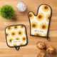 Moda floral floral amarillo amarillo amarillo girasol Mitt y conjunto de soporte de maceta. Más productos con este diseño se encuentran en la colección siguiente